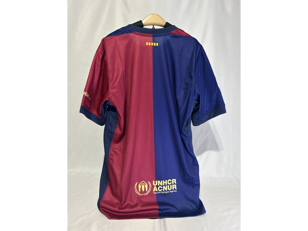 Domáci dres FC Barcelona pre sezónu 2024/2025 spája tradičné modro-granátové farby s moderným športovým dizajnom. Charakteristické pruhy a elegantné detaily vyjadrujú hrdosť a vášeň „Blaugranas“.